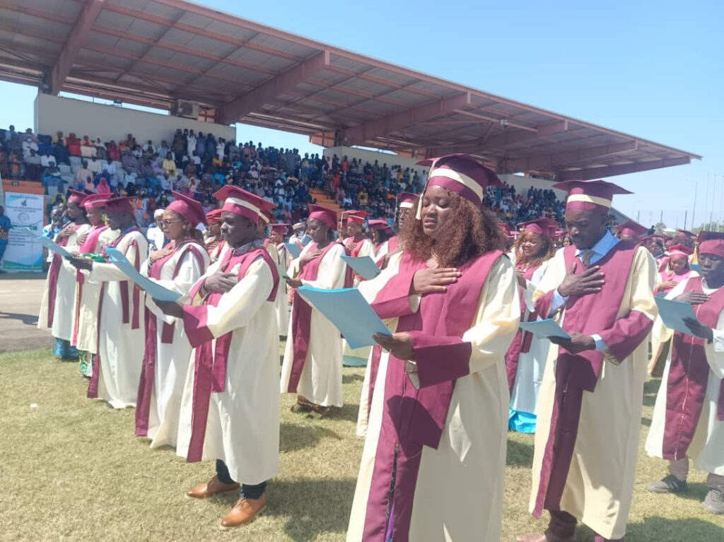 Ngaoundéré, 20 décembre 2025 Une nouvelle promotion de diplômés a prêté serment lors d’une cérémonie solennelle a Ngaoundéré. Vêtus de leurs toges académiques bordeaux et crème, les jeunes professionnels ont prononcé leur engagement devant un public nombreux. Garoua, 30 décembre 2025 La cérémonie s’est poursuivie à Garoua dix jours plus tard, en présence des autorités académiques et des familles des diplômés. Les nouveaux professionnels se sont engagés à servir avec intégrité et excellence. Nos plus chaleureuses félicitations à tous les diplômés ! Nous leur souhaitons une brillante carrière professionnelle guidée par les valeurs d’excellence et de service acquises durant leur formation.